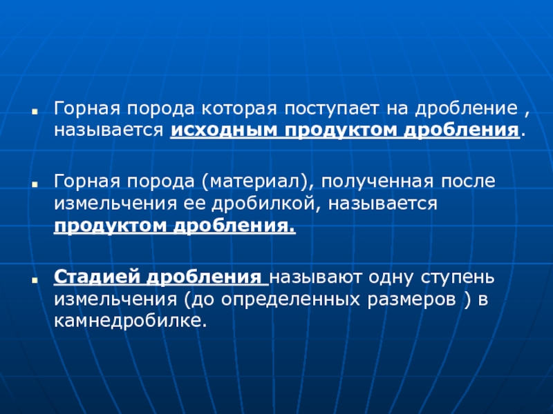 Горная порода которая поступает на дробление , называется исходным продуктом дробления.