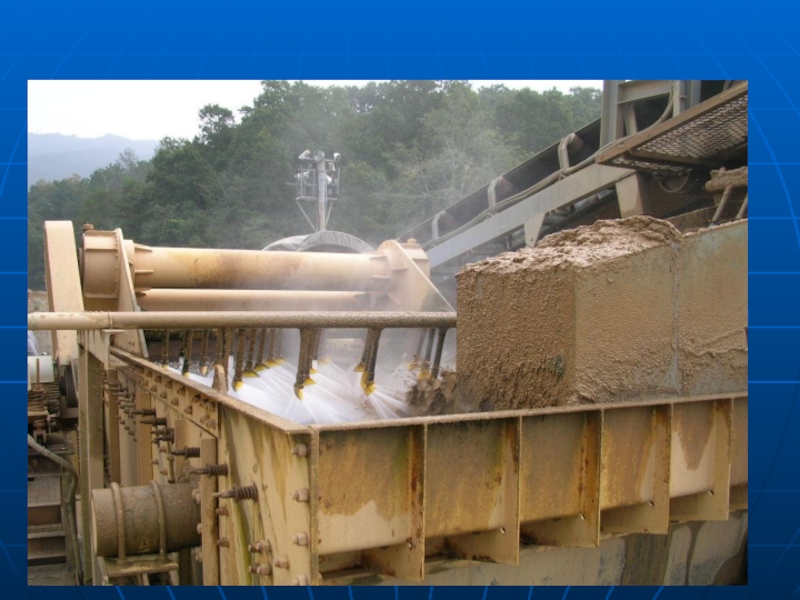 Слайд 38Сущность мокрого грохочения каменных материалов состоит в том, что одновременно с
