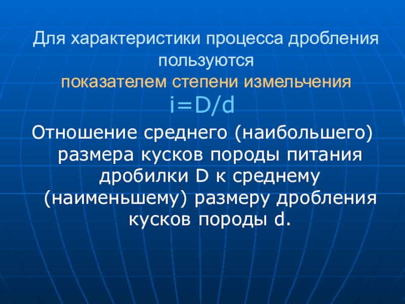кусков породы питания дробилки D к среднему (наименьшему) размеру дробления кусков породы d.