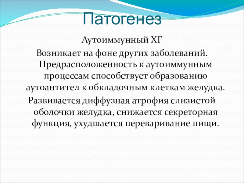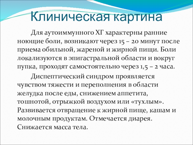 Для аутоиммунного ХГ характерны ранние ноющие боли, возникают через 15
