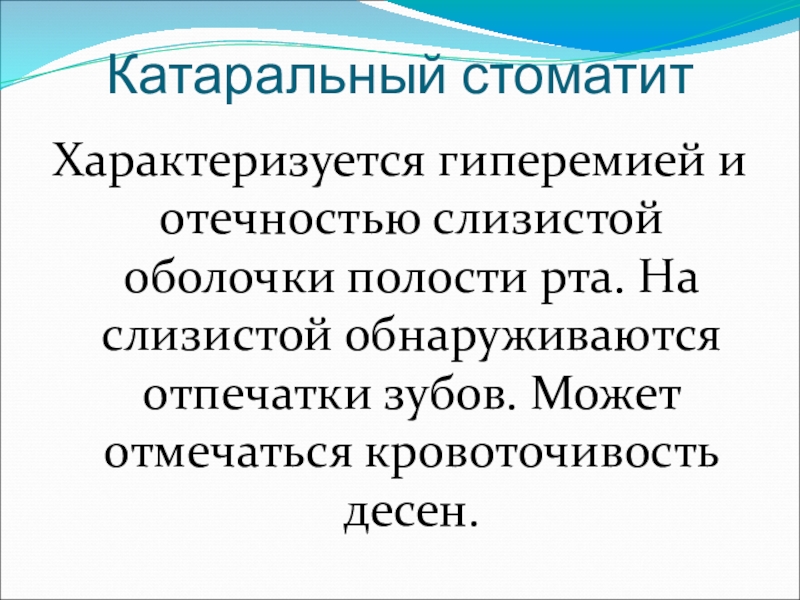 Характеризуется гиперемией и отечностью слизистой оболочки полости рта. На слизистой