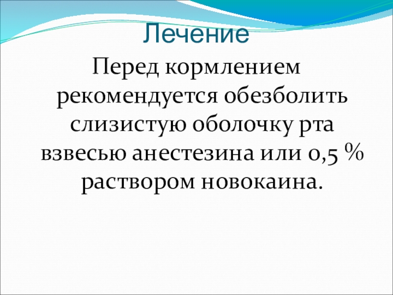Перед кормлением рекомендуется обезболить слизистую оболочку рта взвесью анестезина или 0,5