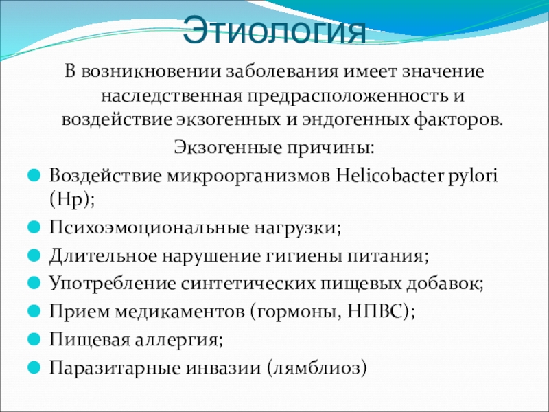 Хронический гастрит (определение, этиология, клиническая картина, диагностика, лечение и профилактика)