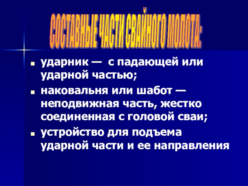 СОСТАВНЫЕ ЧАСТИ СВАЙНОГО МОЛОТА: