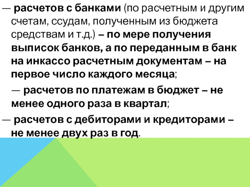 Слайд 17— расчетов с банками (по расчетным и другим счетам, ссудам, полученным