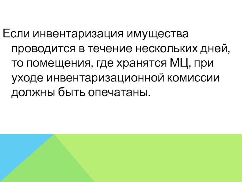 Слайд 10Если инвентаризация имущества проводится в течение нескольких дней, то помещения, где
