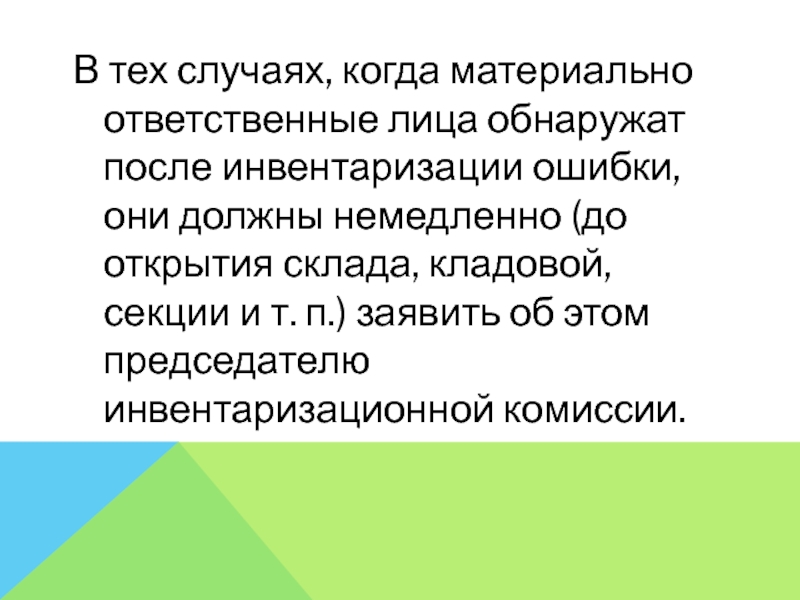 Слайд 11В тех случаях, когда материально ответственные лица обнаружат после инвентаризации ошибки,
