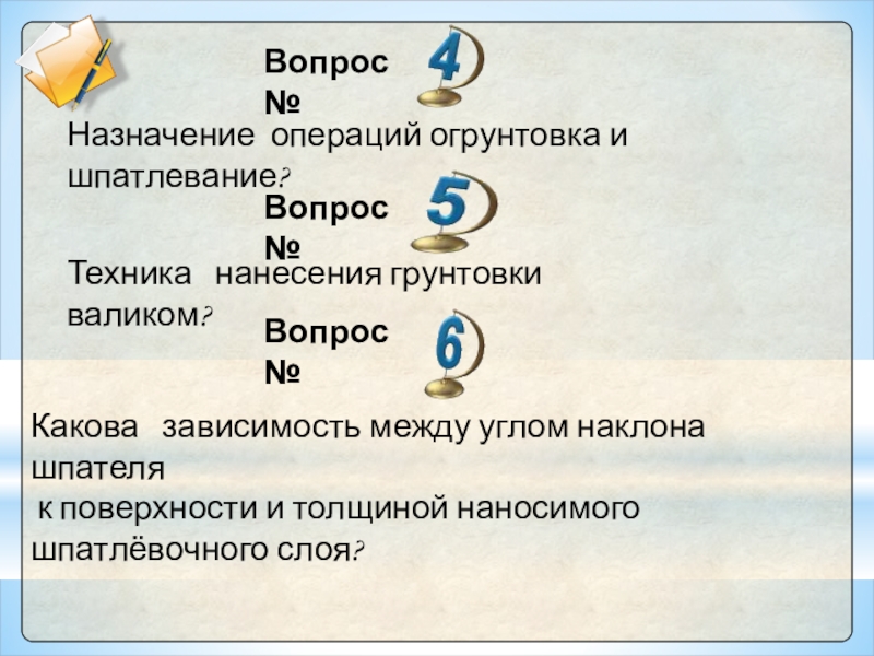 Слайд 5Перечислите технологические операции по подготовке поверхности под оклеивание поверхности стен обоями