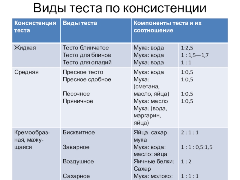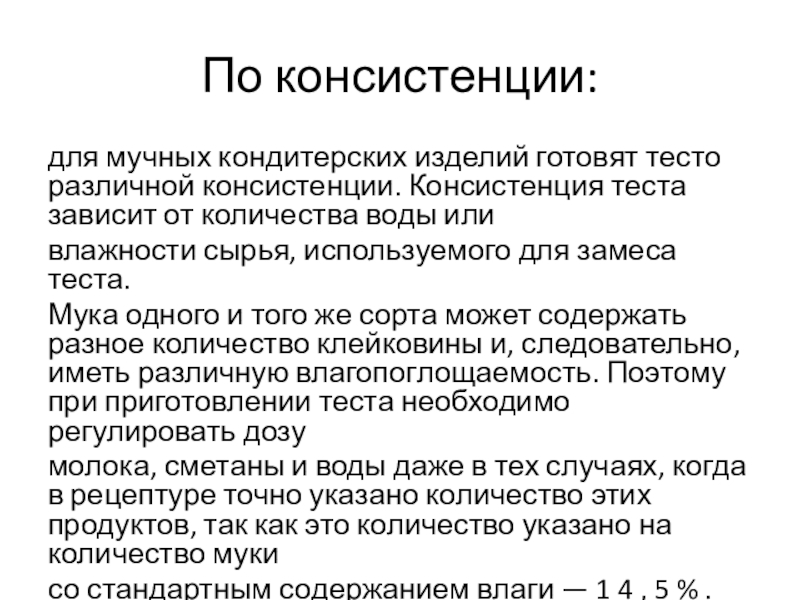 для мучных кондитерских изделий готовят тесто различной консистенции. Консистенция