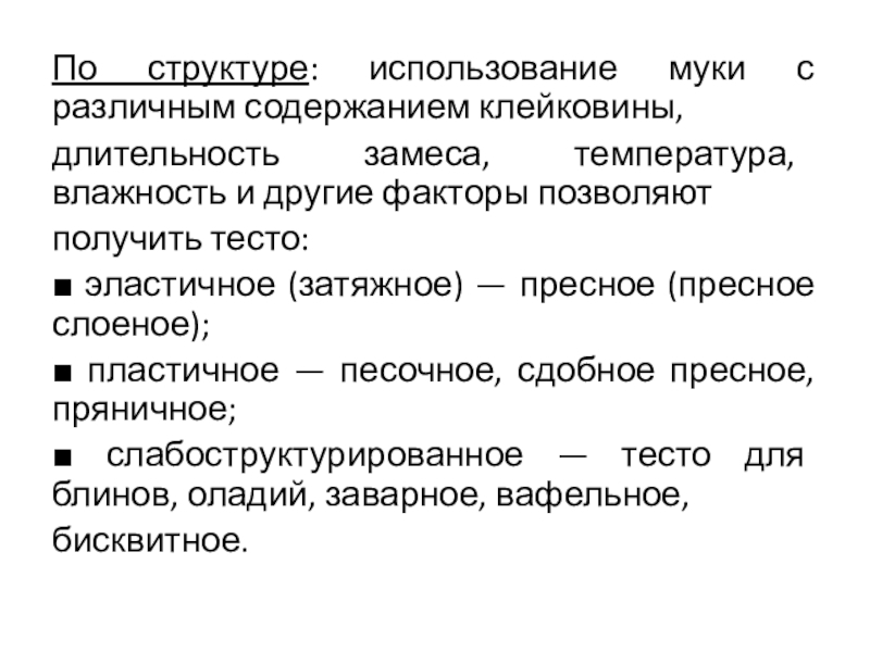 Слайд 11По структуре: использование муки с различным содержанием клейковины,