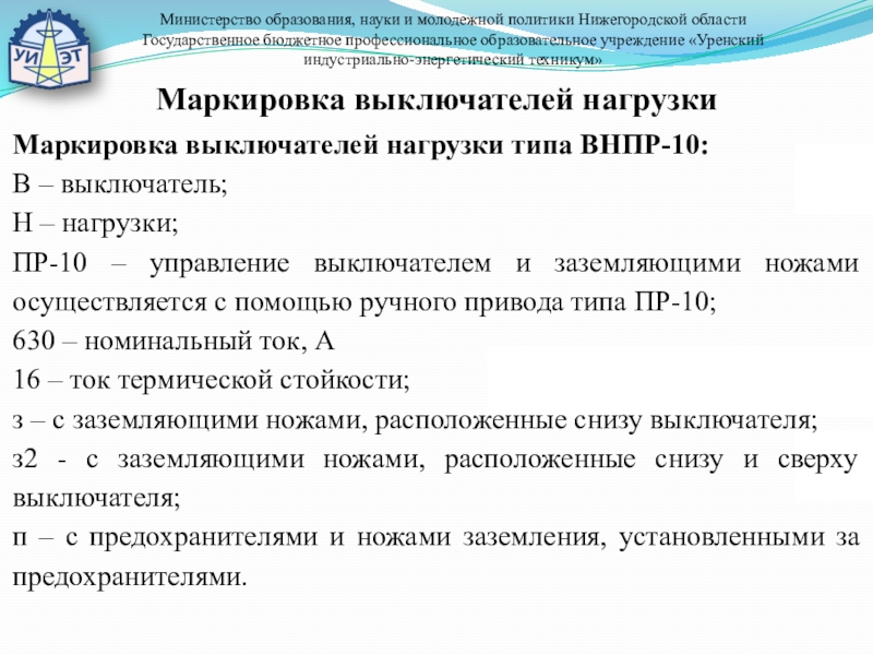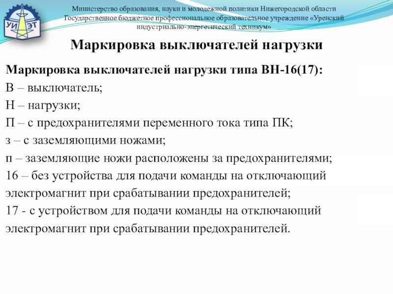 Государственное бюджетное профессиональное образовательное учреждение «Уренский индустриально-энергетический техникум»