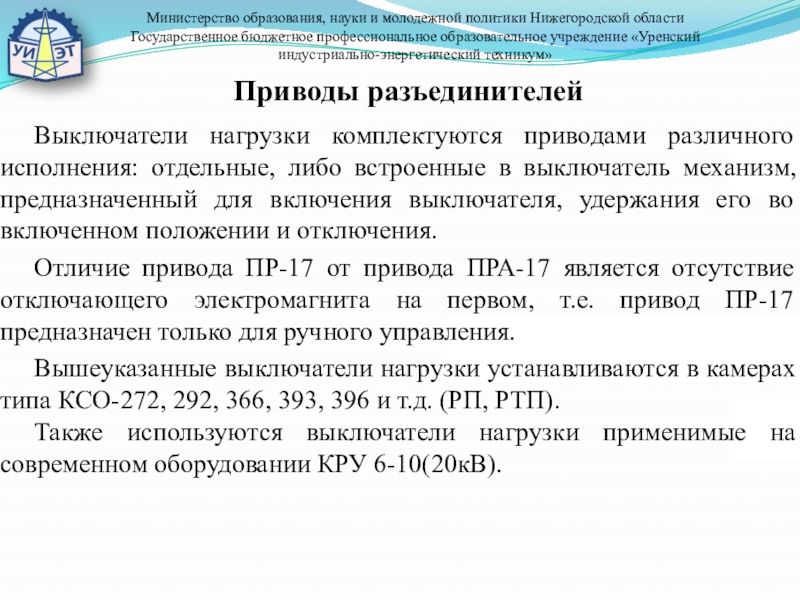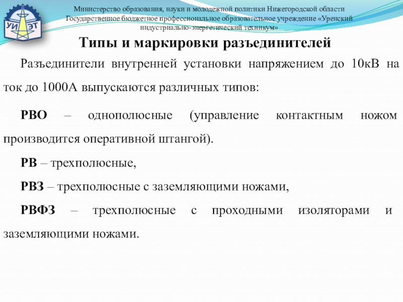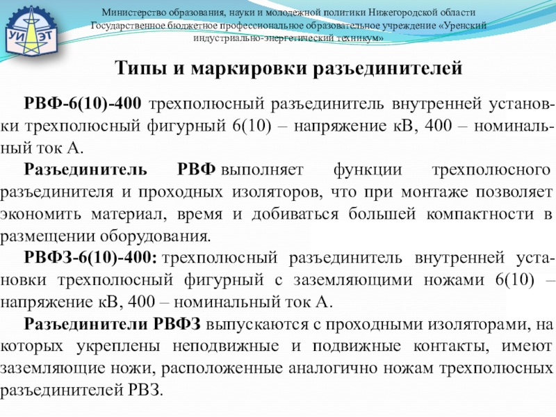 «Разъединители, выключатели нагрузки, силовые выключатели 6-10(20кВ)»