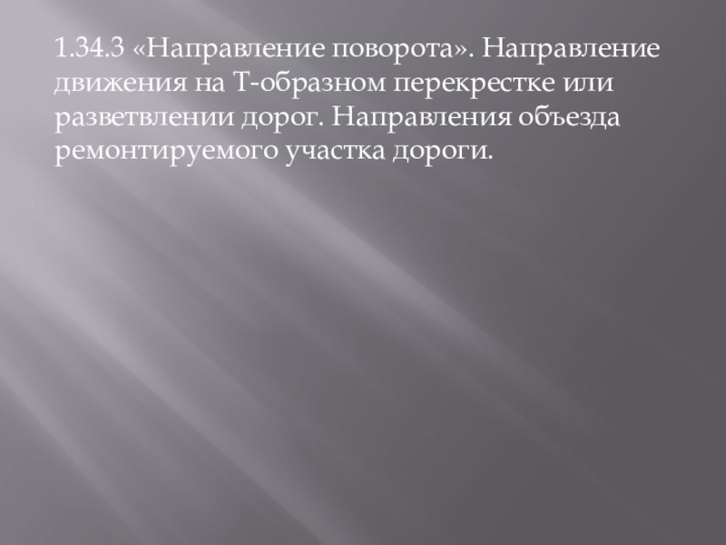Слайд 381.34.3 «Направление поворота». Направление движения на Т-образном перекрестке или разветвлении дорог.