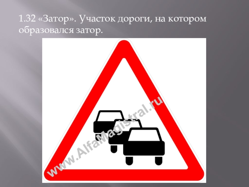 Слайд 351.32 «Затор». Участок дороги, на котором образовался затор.