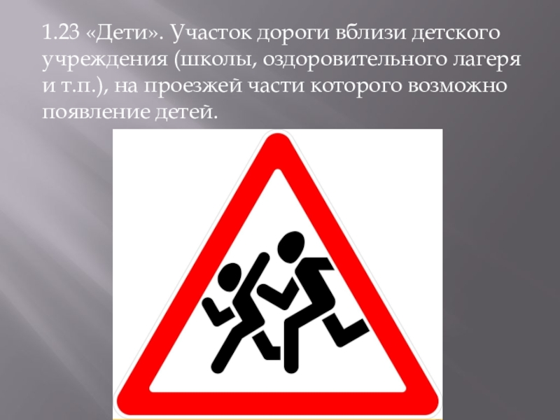Слайд 261.23 «Дети». Участок дороги вблизи детского учреждения (школы, оздоровительного лагеря и
