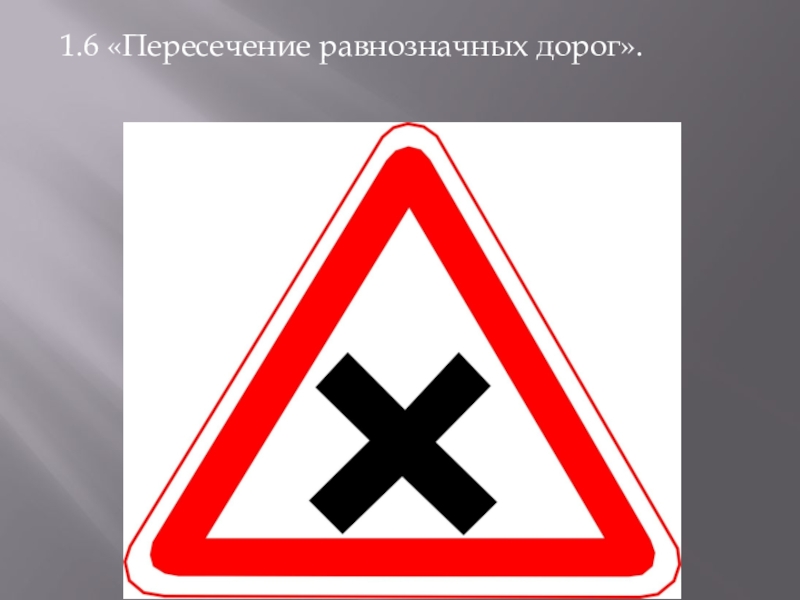 Слайд 91.6 «Пересечение равнозначных дорог».