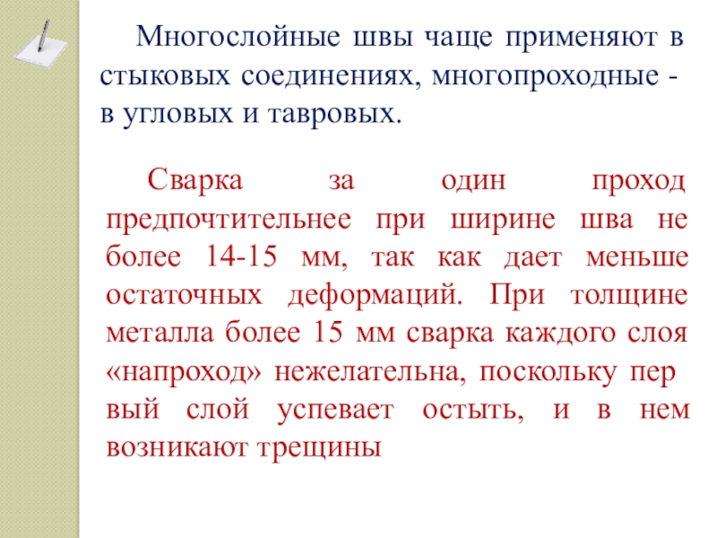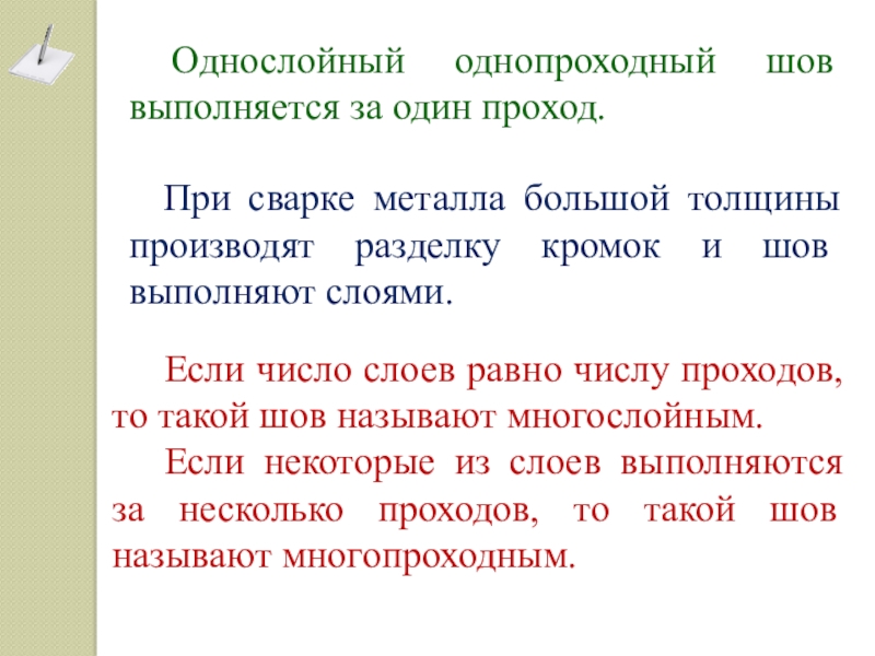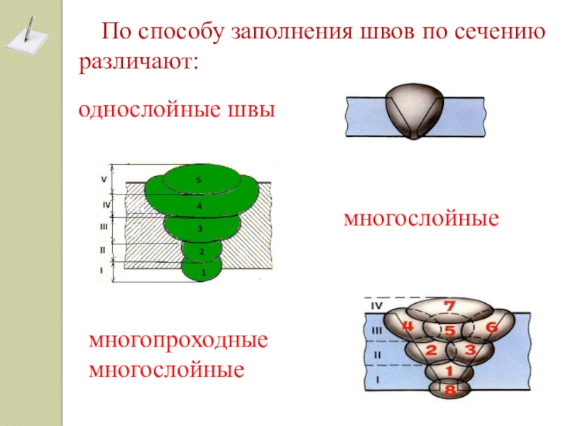 Если некоторые из слоев выполняются за несколько проходов, то такой шов называют многопроходным.
