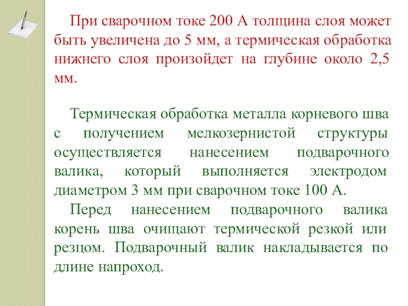 При сварочном токе 200 А толщина слоя может быть увеличена до 5 мм, а термическая обработка нижнего слоя произойдет на глубине около 2,5 мм.