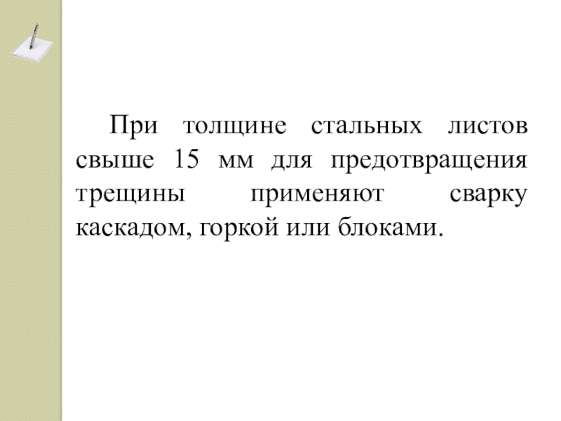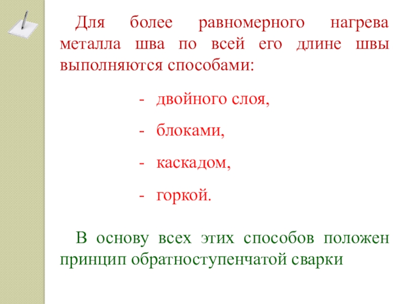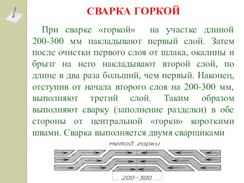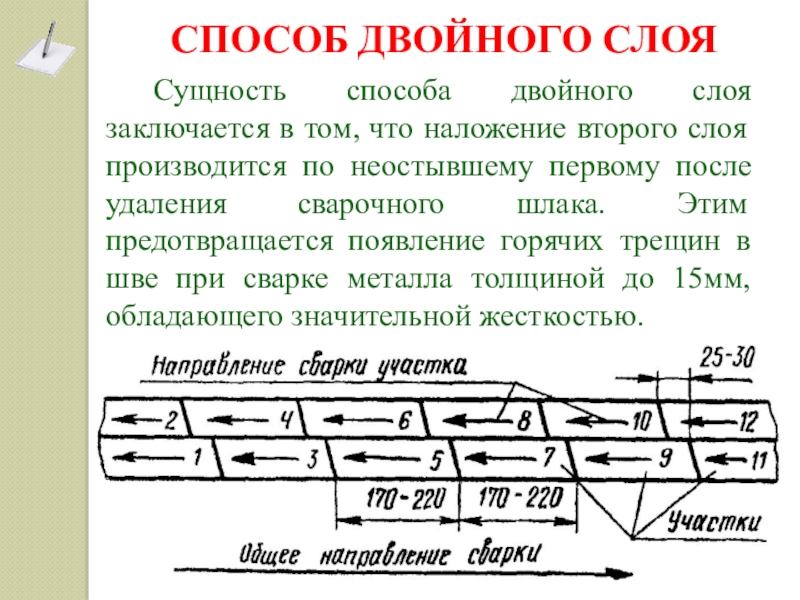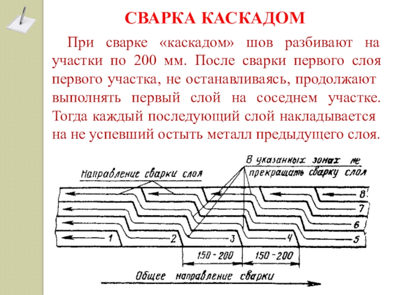 В основу всех этих способов положен принцип обратноступенчатой сварки