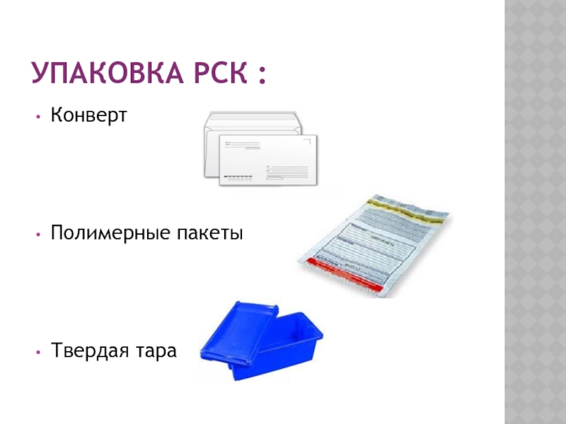 Упаковка Рск :Конверт Полимерные пакеты Твердая тара