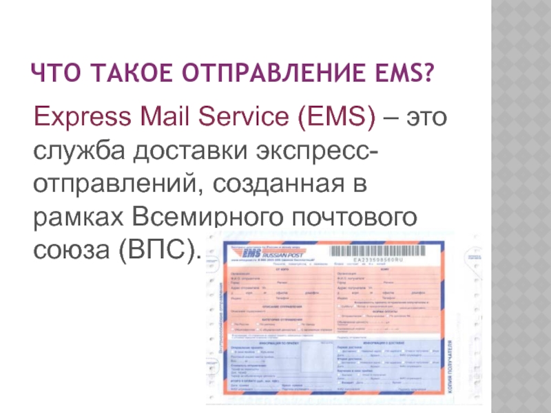 Слайд 9Что такое отправление ЕМS?