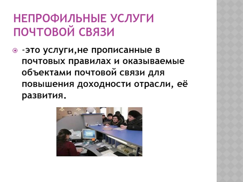 Слайд 1 Непрофильные услуги почтовой связи