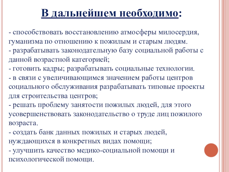 3) Развитие методологической, научной базы социальной работы с пожилыми и старыми людьми;