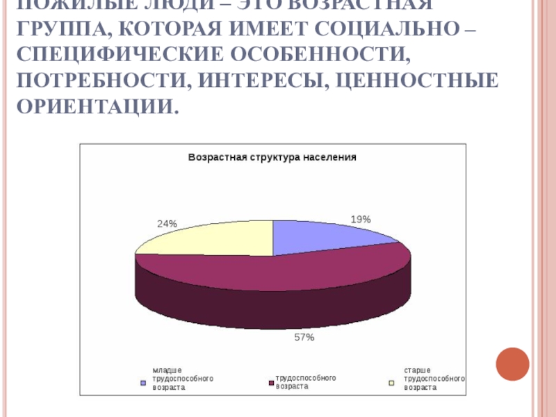Слайд 2ПОЖИЛЫЕ ЛЮДИ – ЭТО ВОЗРАСТНАЯ ГРУППА, КОТОРАЯ ИМЕЕТ СОЦИАЛЬНО – СПЕЦИФИЧЕСКИЕ ОСОБЕННОСТИ, ПОТРЕБНОСТИ, ИНТЕРЕСЫ, ЦЕННОСТНЫЕ ОРИЕНТАЦИИ.
