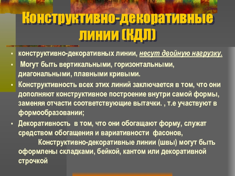 Слайд 8Конструктивно-декоративные линии (КДЛ)