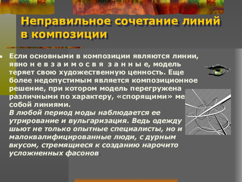 Слайд 44Неправильное сочетание линий в композиции