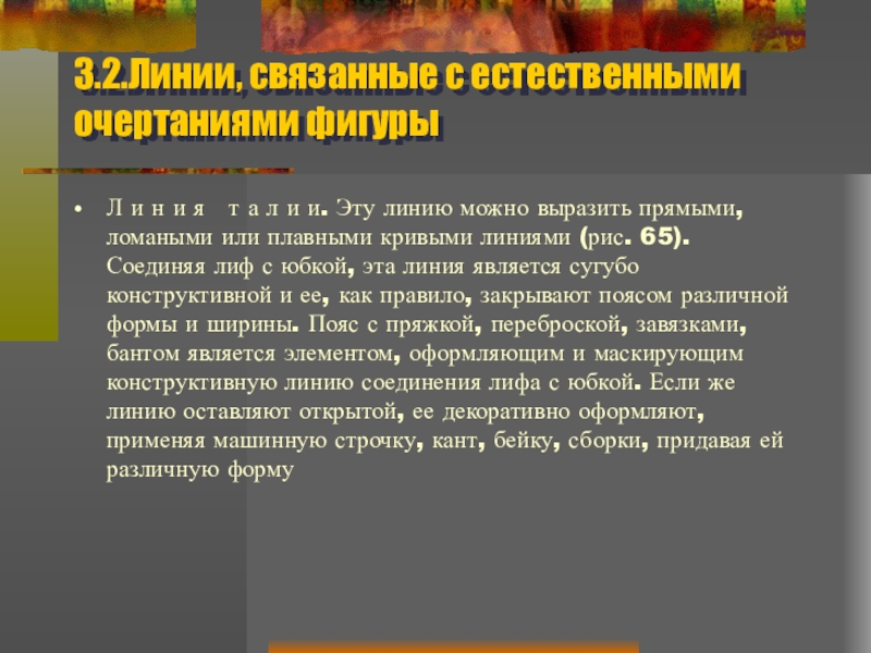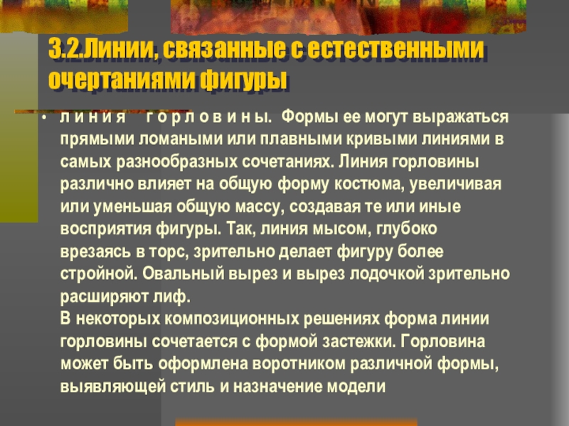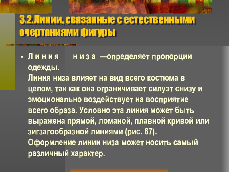 Слайд 283.2.Линии, связанные с естественными очертаниями фигуры