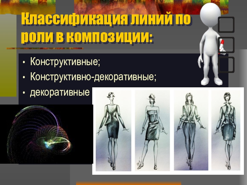 Слайд 1ЛИНИИ В КОМПОЗИЦИИ ОДЕЖДЫ