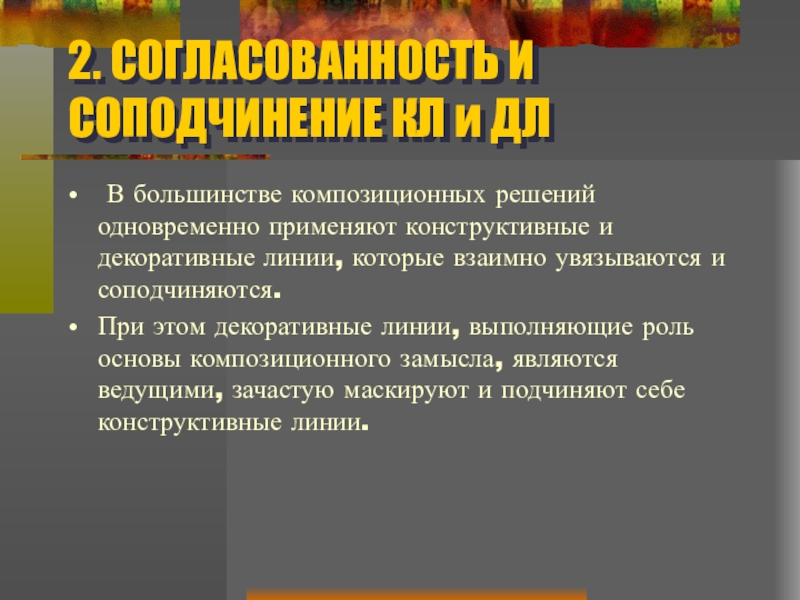 Слайд 15Согласовнность и подчинение линий