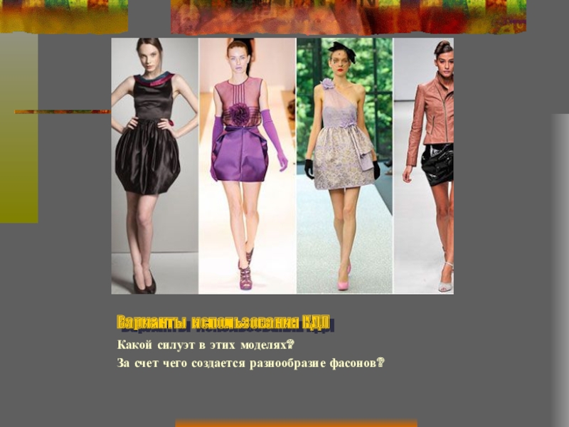 Задание. Перечислите, за счет чего созданы разнообразные фасоны