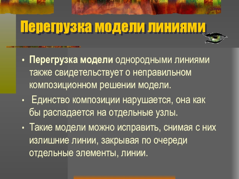 Перегрузка модели однородными линиями также свидетельствует о неправильном композиционном решении
