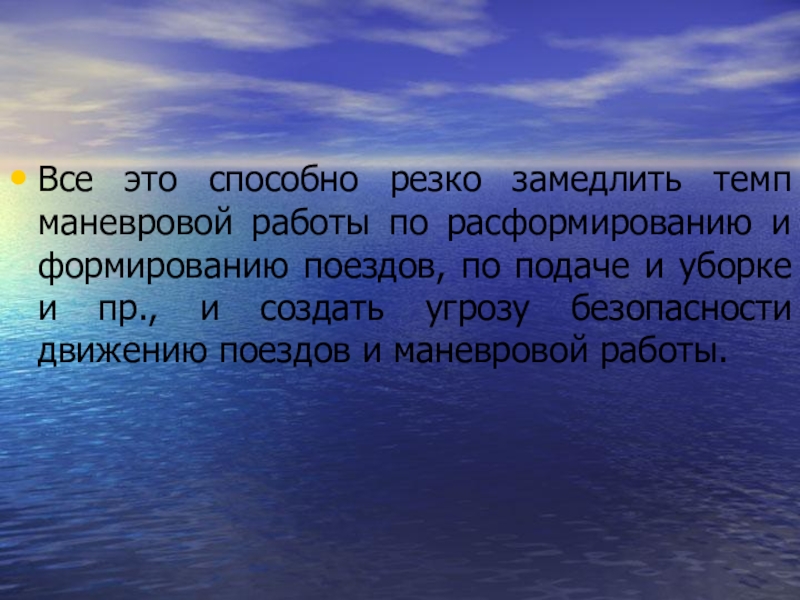Слайд 8Все это способно резко замедлить темп маневровой работы по расформированию и