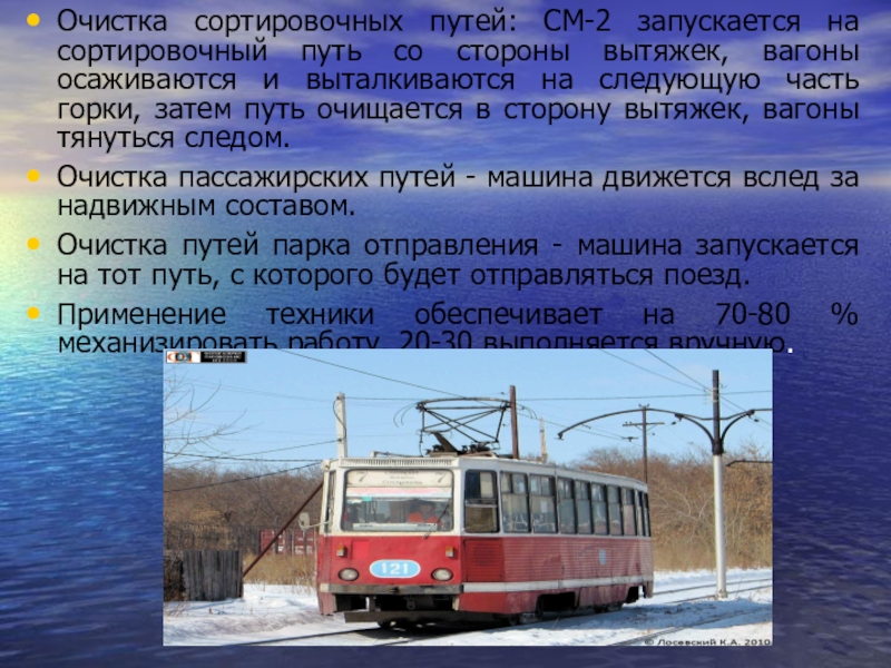 Слайд 19Очистка сортировочных путей: СМ-2 запускается на сортировочный путь со стороны вытяжек,