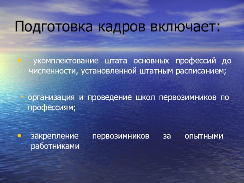 Слайд 5Подготовка кадров включает: