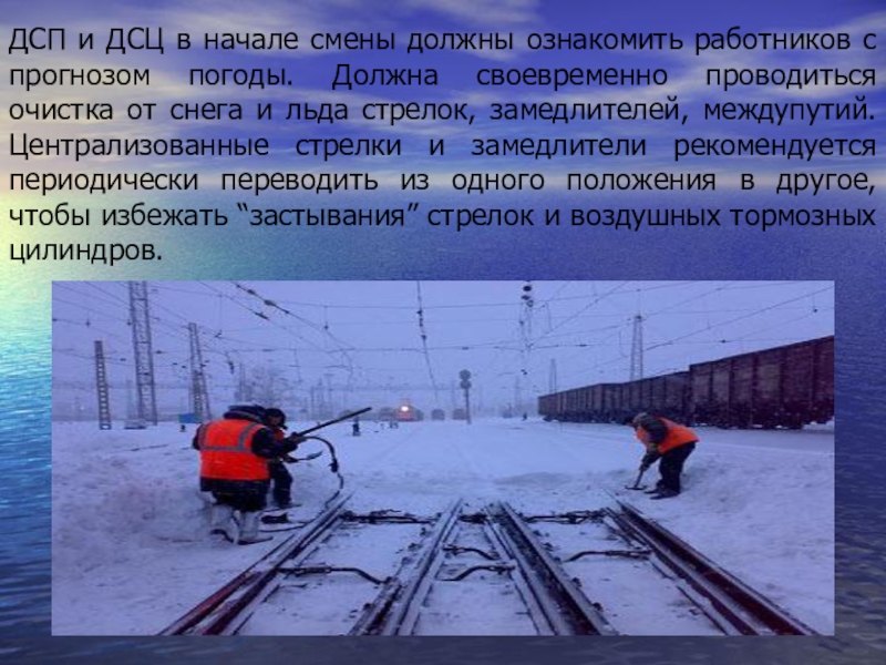 Слайд 10ДСП и ДСЦ в начале смены должны ознакомить работников с прогнозом