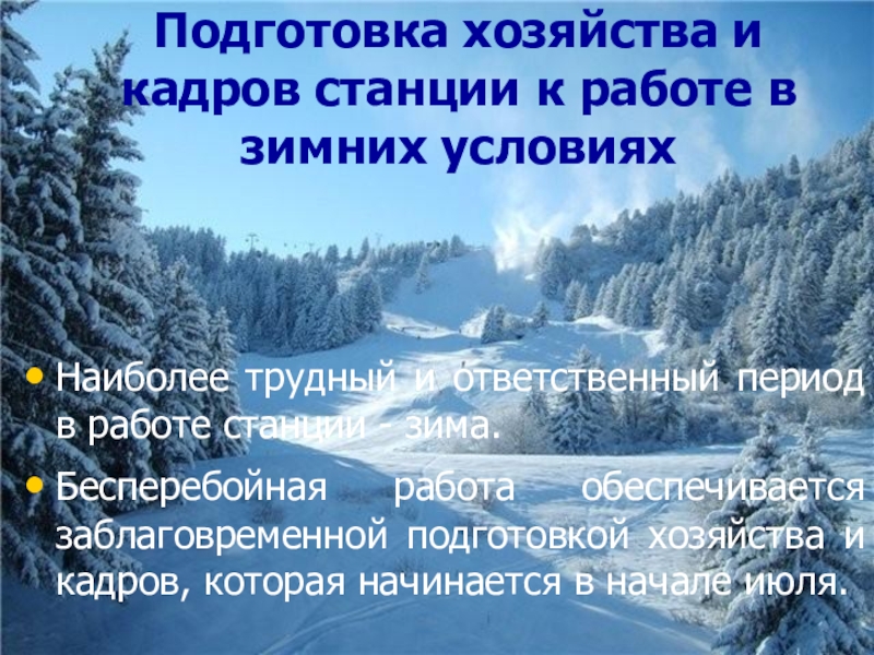 Слайд 2Подготовка хозяйства и кадров станции к работе в зимних условиях