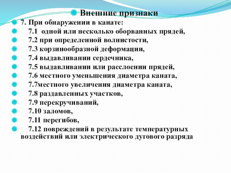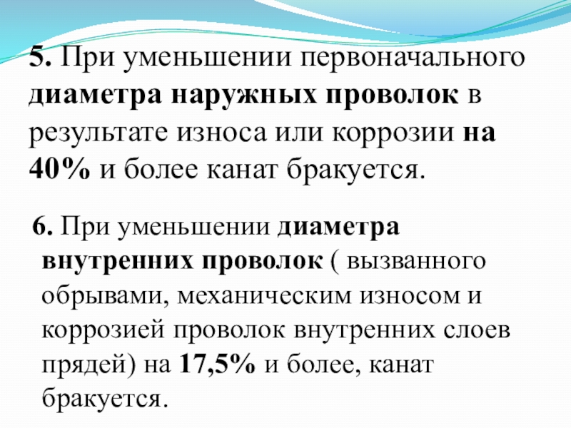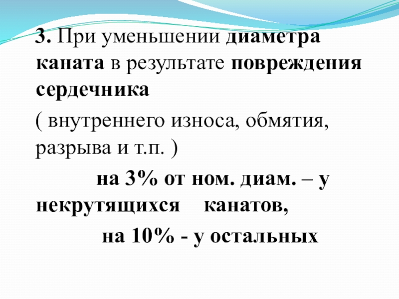 Слайд 6 3. При уменьшении диаметра каната в результате повреждения сердечника