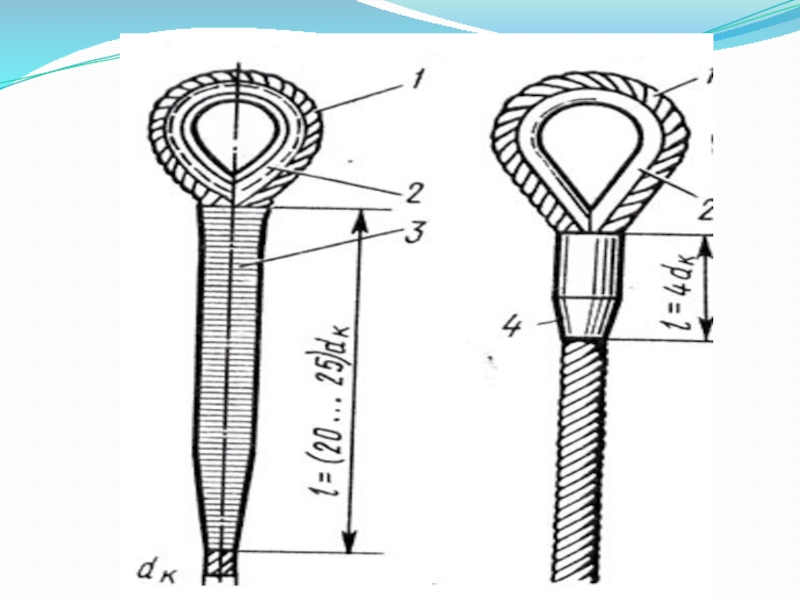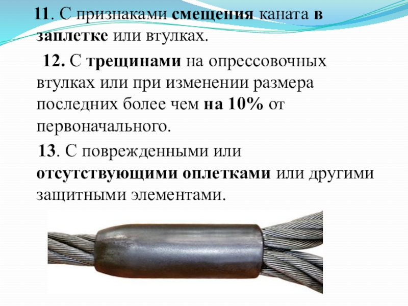 Слайд 12 11. С признаками смещения каната в заплетке или втулках.