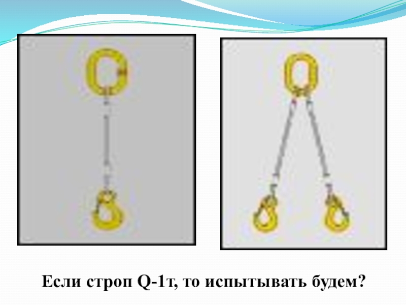 Слайд 23Если строп Q-1т, то испытывать будем?