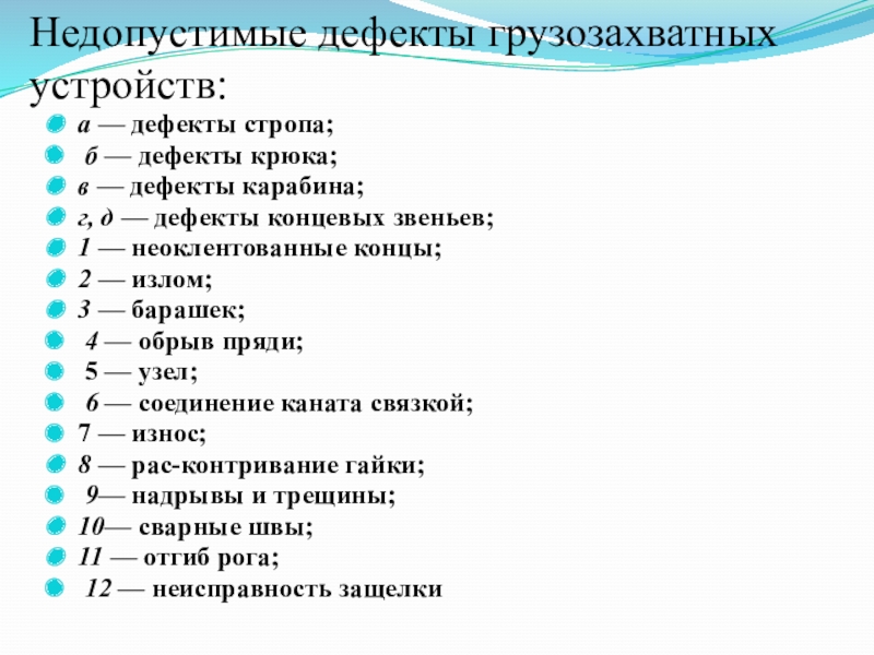 Слайд 19Недопустимые дефекты грузозахватных устройств:
