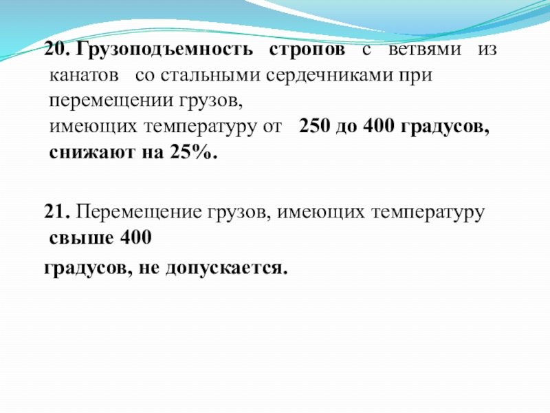 Слайд 21 20. Грузоподъемность стропов с ветвями из
