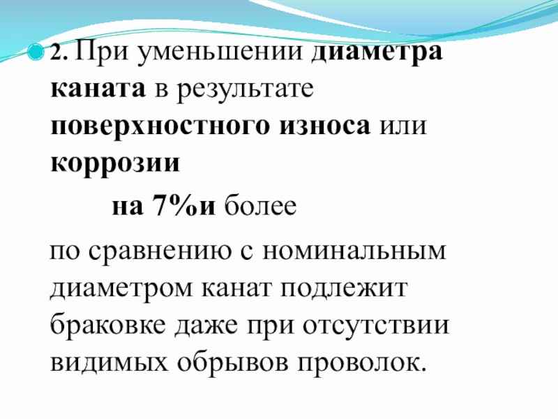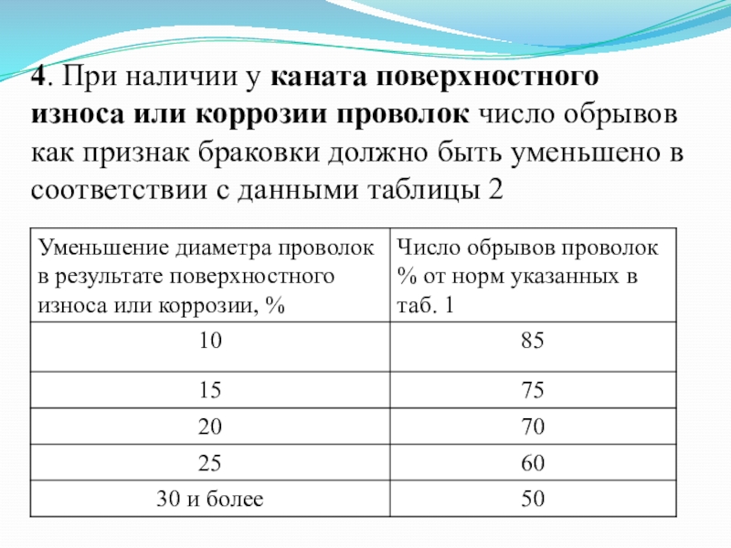 Слайд 74. При наличии у каната поверхностного износа или коррозии проволок число