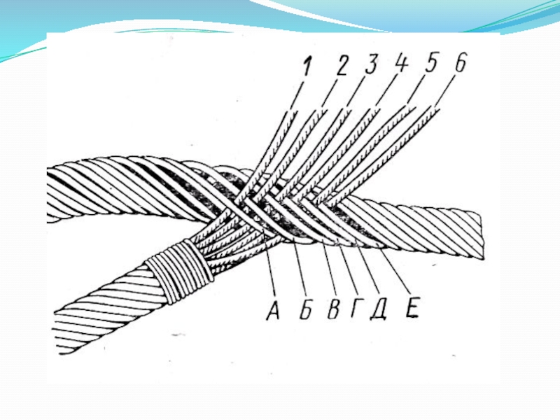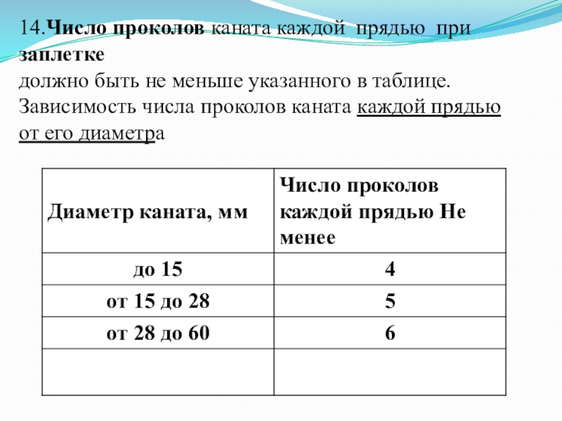 Слайд 1314.Число проколов каната каждой прядью при заплетке