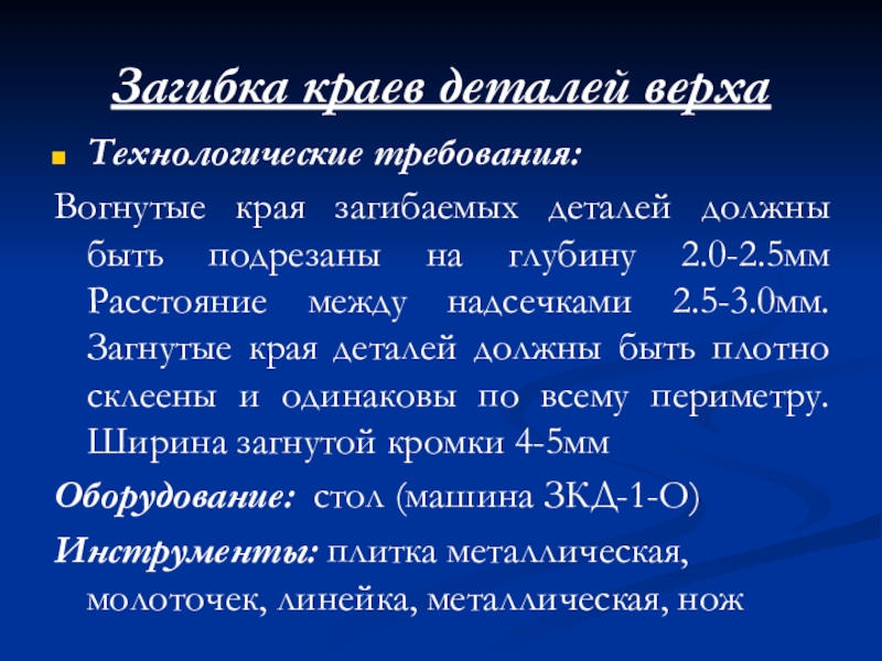 Технологические требования, нормативы выполнения основных операций по обработке деталей верха обуви