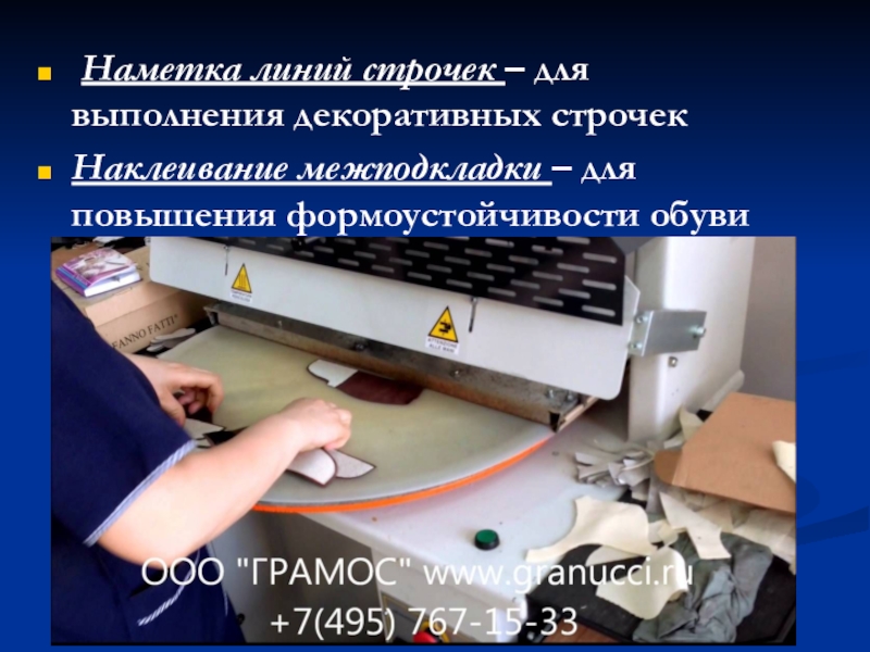 по контурной обработке деталей низа и отделочного покрытия деталей верха, чистки обуви для придания ей нарядного внешнего вида.