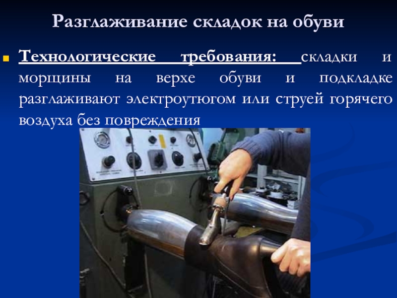 Слайд 59Влажно-тепловая обработка и сушка обуви – для фиксации формы обуви